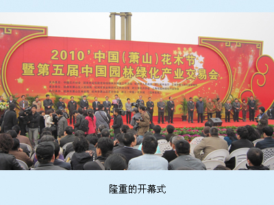 3月18日,’2010中国(萧山)花木节暨第五届中国园林绿化产业交易会在我区花木城拉开帷幕。今年的花木节首次升格为“国字号”,共设展位272个,来自全国15个省(市、自治区),以及美国、英国、日本等国家的148家企业参展。