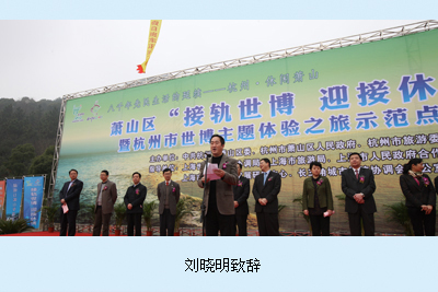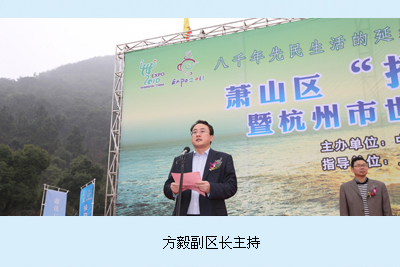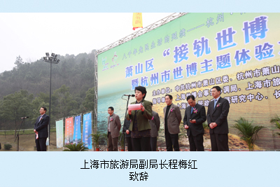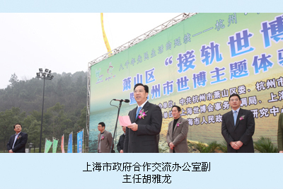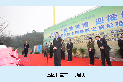 2月27日上午,萧山“接轨世博 迎接休博”启动暨杭州市世博主题体验之旅示范点授牌仪式在湘湖城山广场举行。区委副书记、区长盛阅春宣布活动启动,并与上海世博局中国馆部副部长钱伯金共同为世博会吉祥物“海宝”揭幕。区领导谭勤奋、朱国铭和上海世博局、上海旅游局、上海市政府合作交流办公室、杭州市旅委等单位有关领导参加仪式。副区长方毅主持仪式。